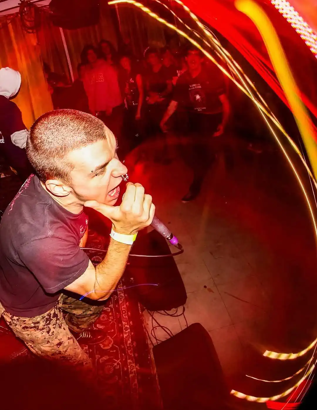 @dommel_mosel in all of his colors at The Hive! More bands to come! $3😈 byob