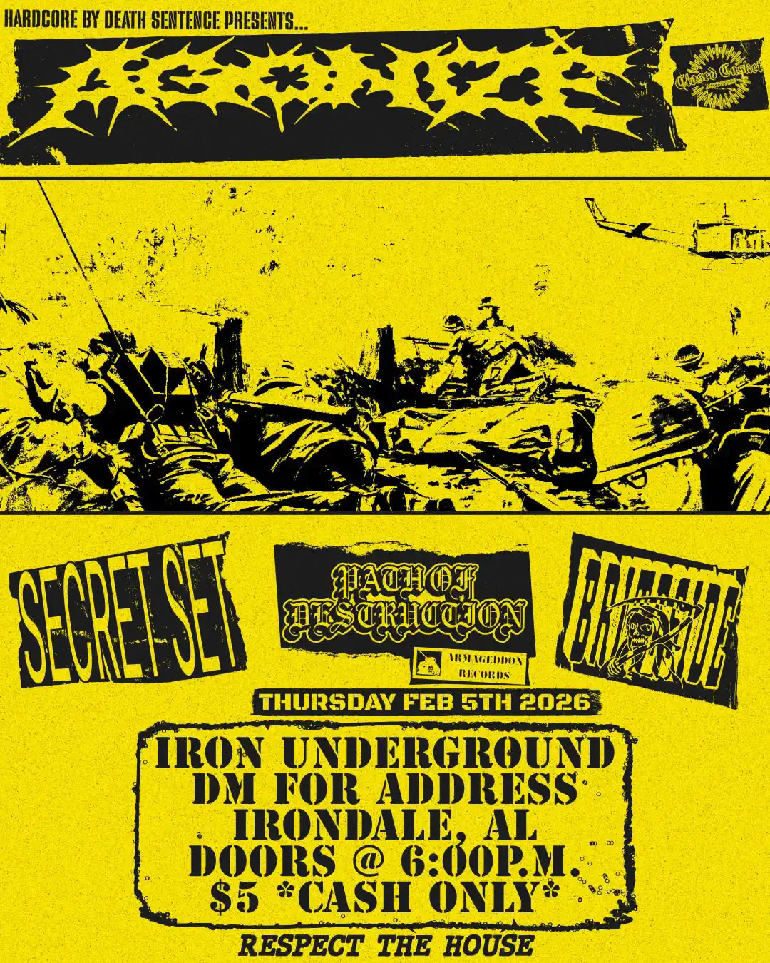 02052026 DM @deathsentencepresents FOR DETAILS RESPECT THE HOUSE SOBER SPACE - @agonize912 =SECRET SET= @xpathofdestructionx @briteside.hc @alabamahardcore