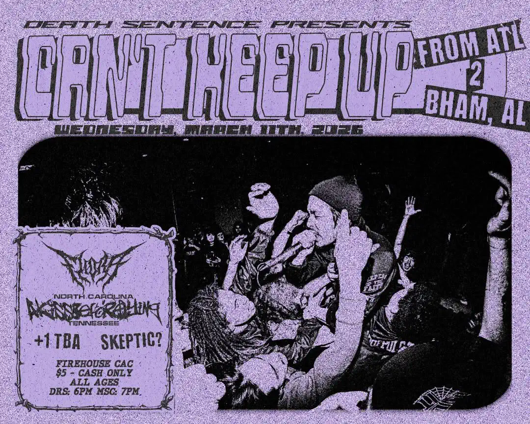 03112026 - LONG TIME ATLANTA HOMIES COMING THROUGH ALABAMA ONCE AGAIN + FLIORA COMING FROM NORTH CAROLINA & A KISS BEFORE DYING COMING FROM THE GREAT STATE OF TENNESSEE - @cantkeepupatl @fliorahc @akissbeforedying_ @skepticbirmingham - @alabamahardcore @diybirmingham - FLYER BY @temperatevisuals