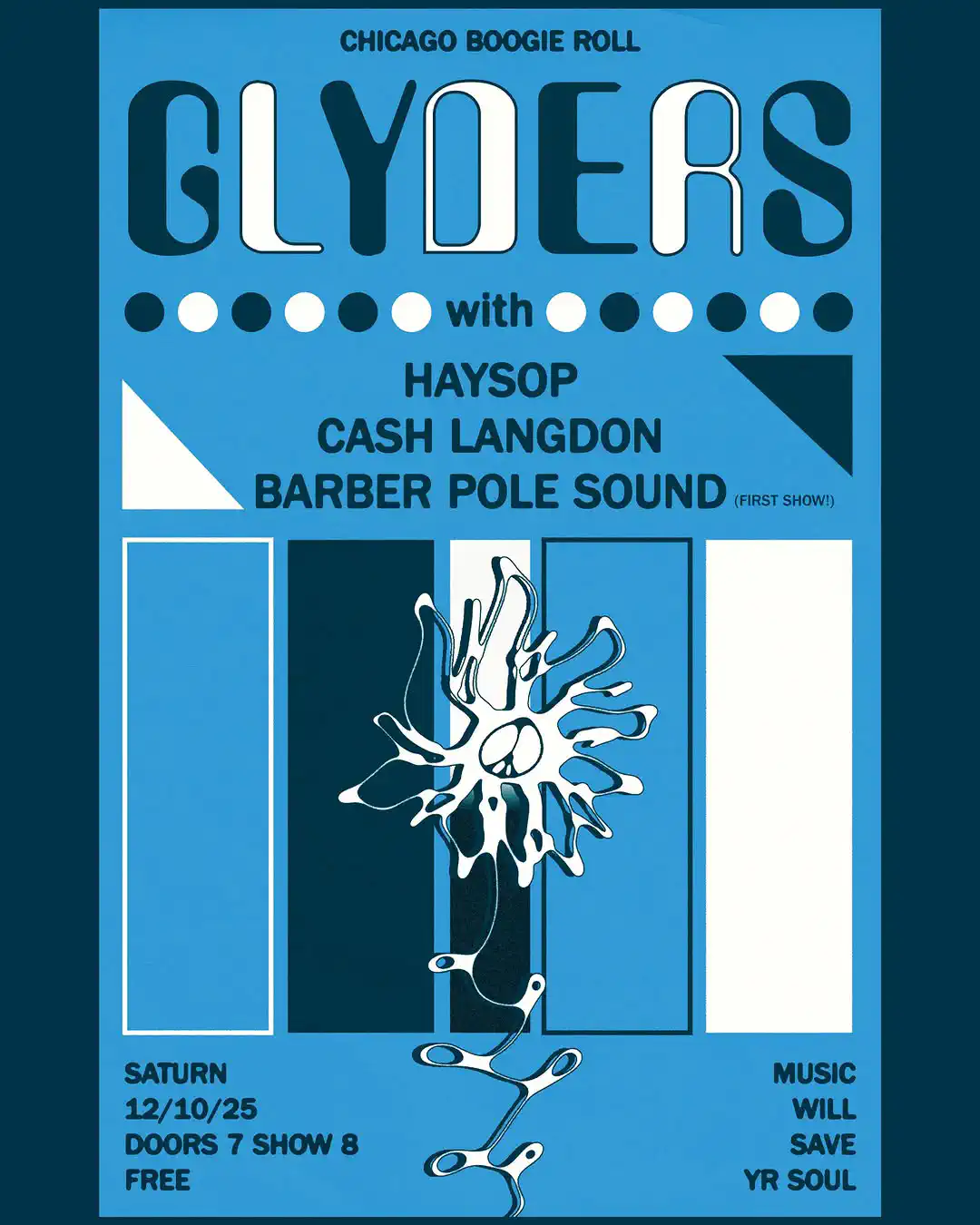 12/10 at Saturn ☮️ Awesome free show with Glyders, Haysop, Cash Langdon, & new band Barber Pole Sound! You’re not doing anything else on a Wednesday, come groove… music at 8