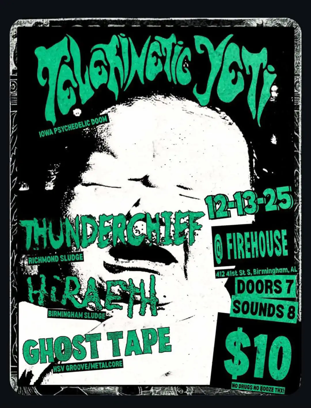 Did you know that some sasquatches can move things with their mind? Find out for real this weekend with @telekinetic_yeti @thunderchiefofficial @hiraeth_official_ and @_ghosttape ! Be there!