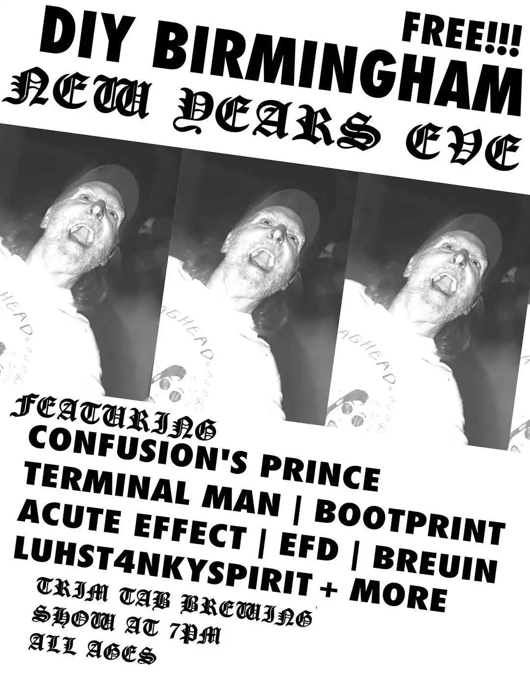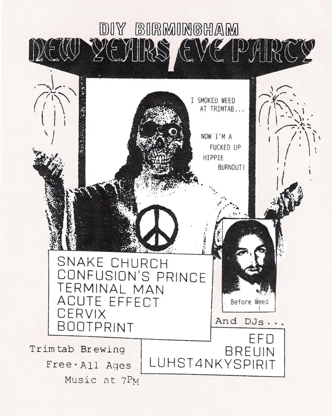 A present from us to you…. DIYBIRMINGHAM NYE BLOWOUT AT TRIMTAB continues…. More bands….. more flyers…. We ain’t never gonna stop!! All this and more on NYE, first band at 7PM sharp and going til midnight, come ready to turn up!! Flyer by @picklefortheknowingones