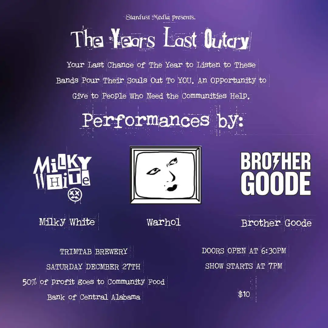 December 27th at Trim Tab! Milky White, Warhol and Brother Goode, $10!