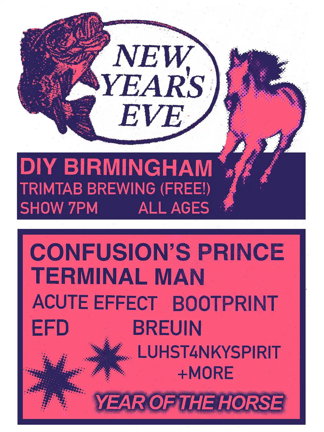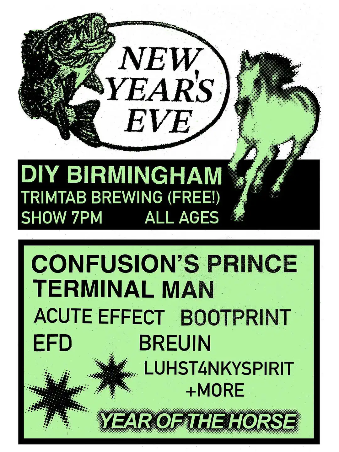 ❄️🐎TOMORROW NIGHT (12/31)🐎❄️ Too many bands… too many flyers… too much insanity…. DIYBIRMINGHAM invades Trim Tab tomorrow night to close the year out with a BANG💥💥💥 all these bands AND MORE tomorrow night, starting at 7 and going up to midnight. Come be psycho one more time in 2025!! Flyer by Dez