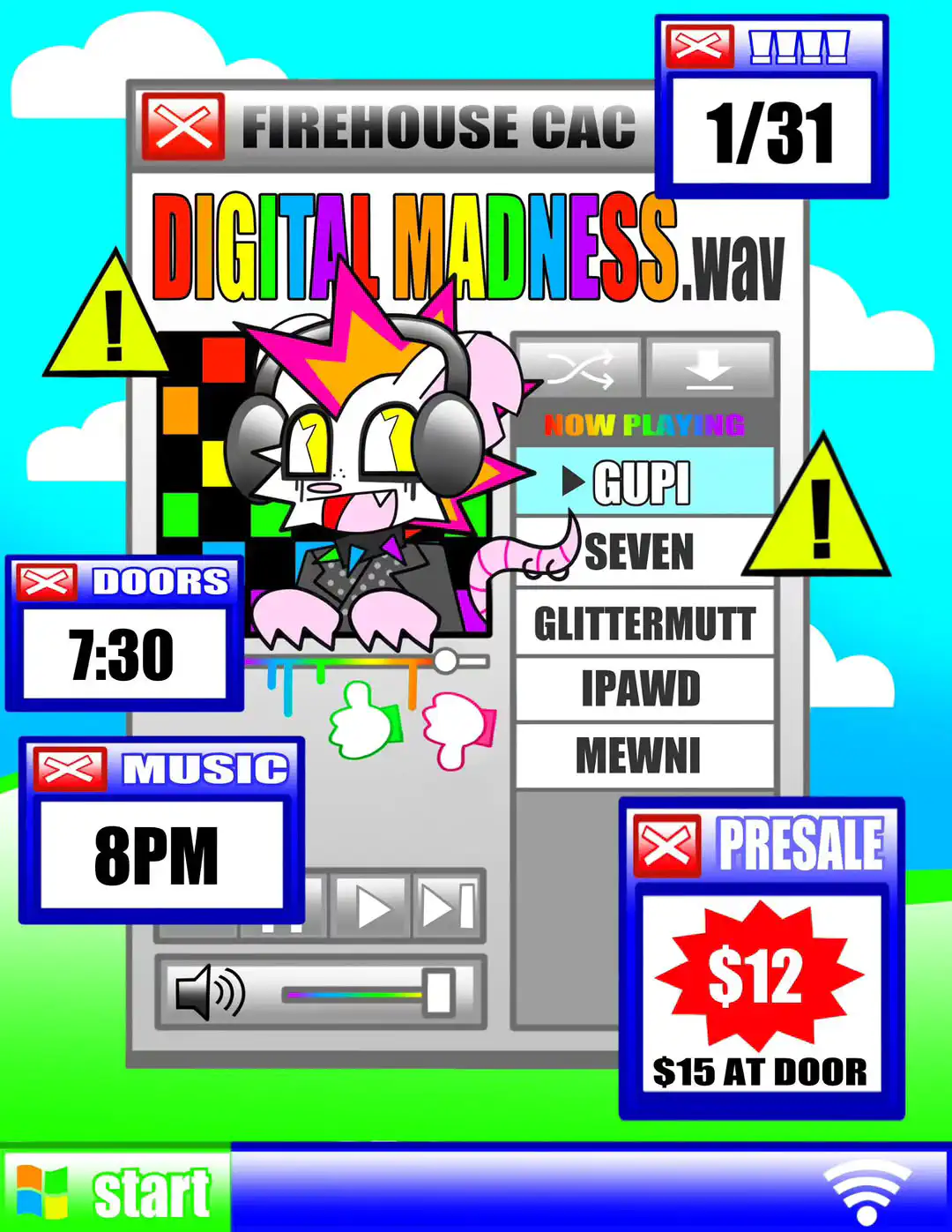 Old-school internet rave 👾DIGITAL MADNESS.WAV👾 coming up on 1/31 🌐 @gupimusic headlining their return to Birmingham after a sold-out show with Food House last year, plus some of the best breakcore & hardcore DJs in the south kicking things off! Presale tickets are $12, link in @kamrynsonline bio! Flyer by @beetalz