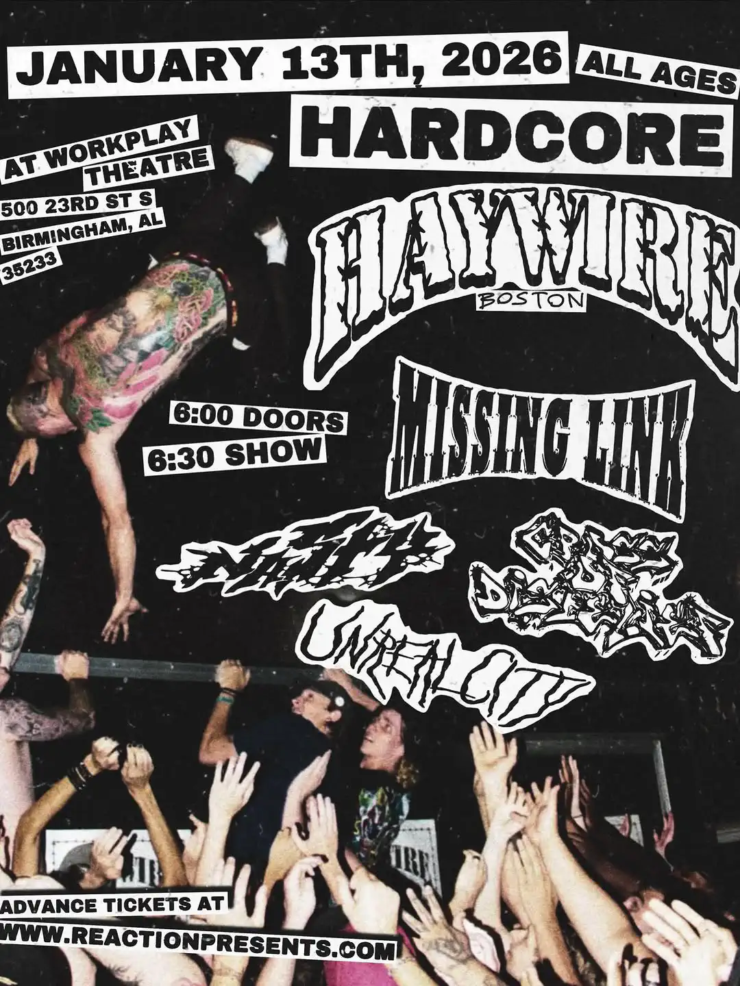 BIRMINGHAM, ALABAMA IA A PLACE WHERE PEOPLE APPRECIATE MUSIC DIFFERENT. HAYWIRE HAS NEVER EVER PLAYED A BORING SHOW IN THIS STATE. ALABAMA HARDCORE ALL DAY EVERY DAY.