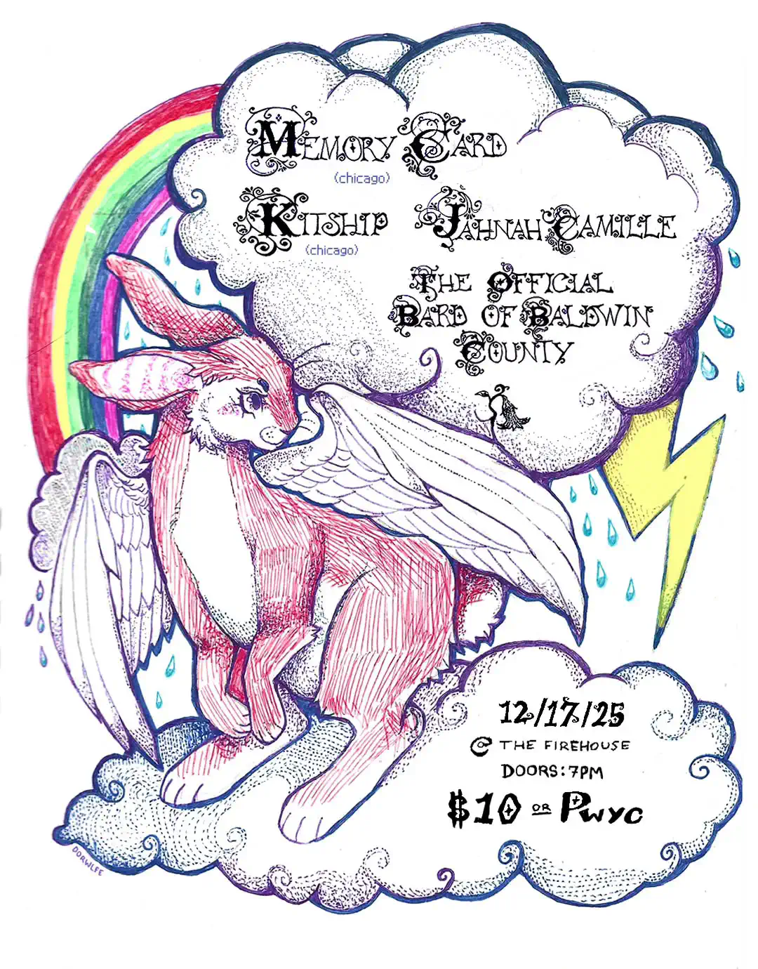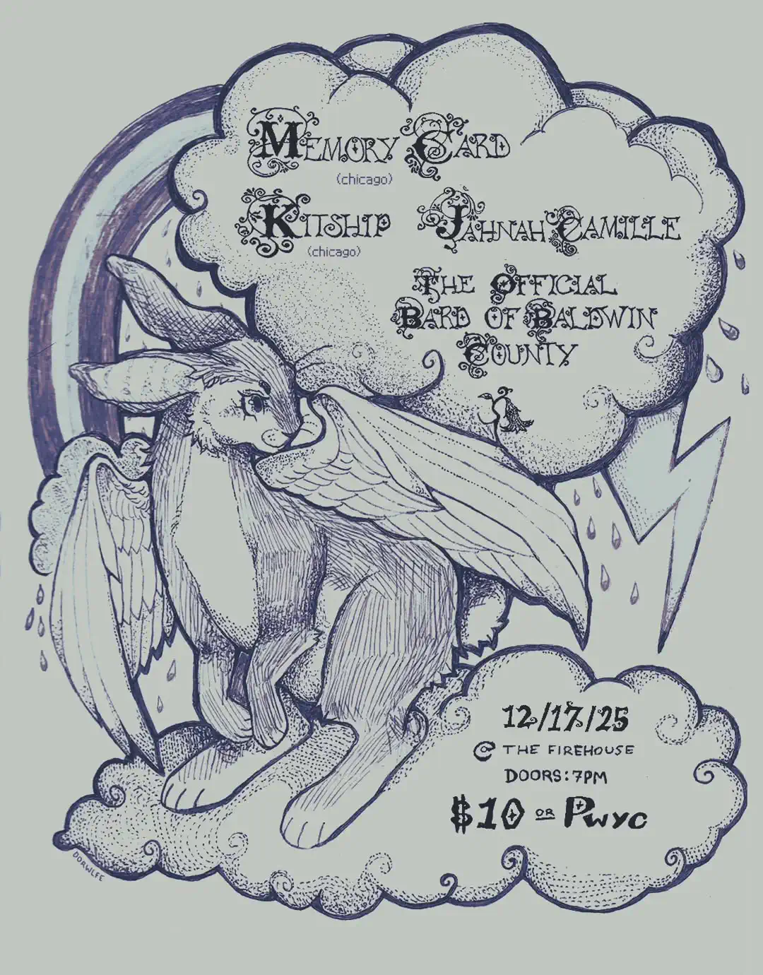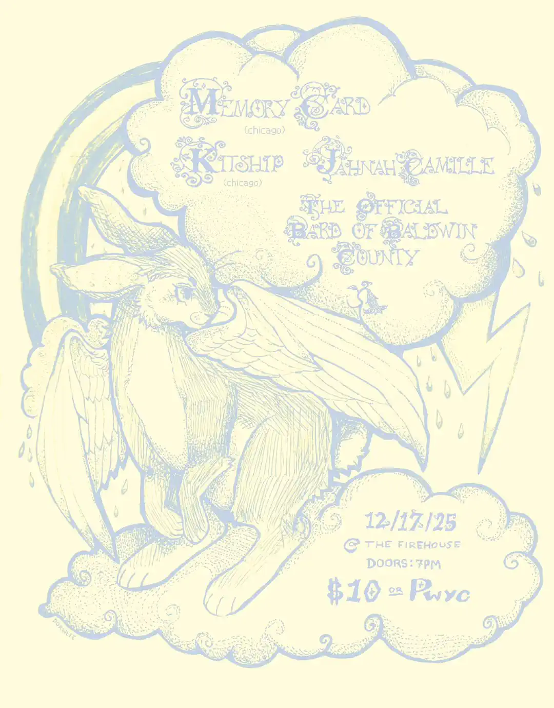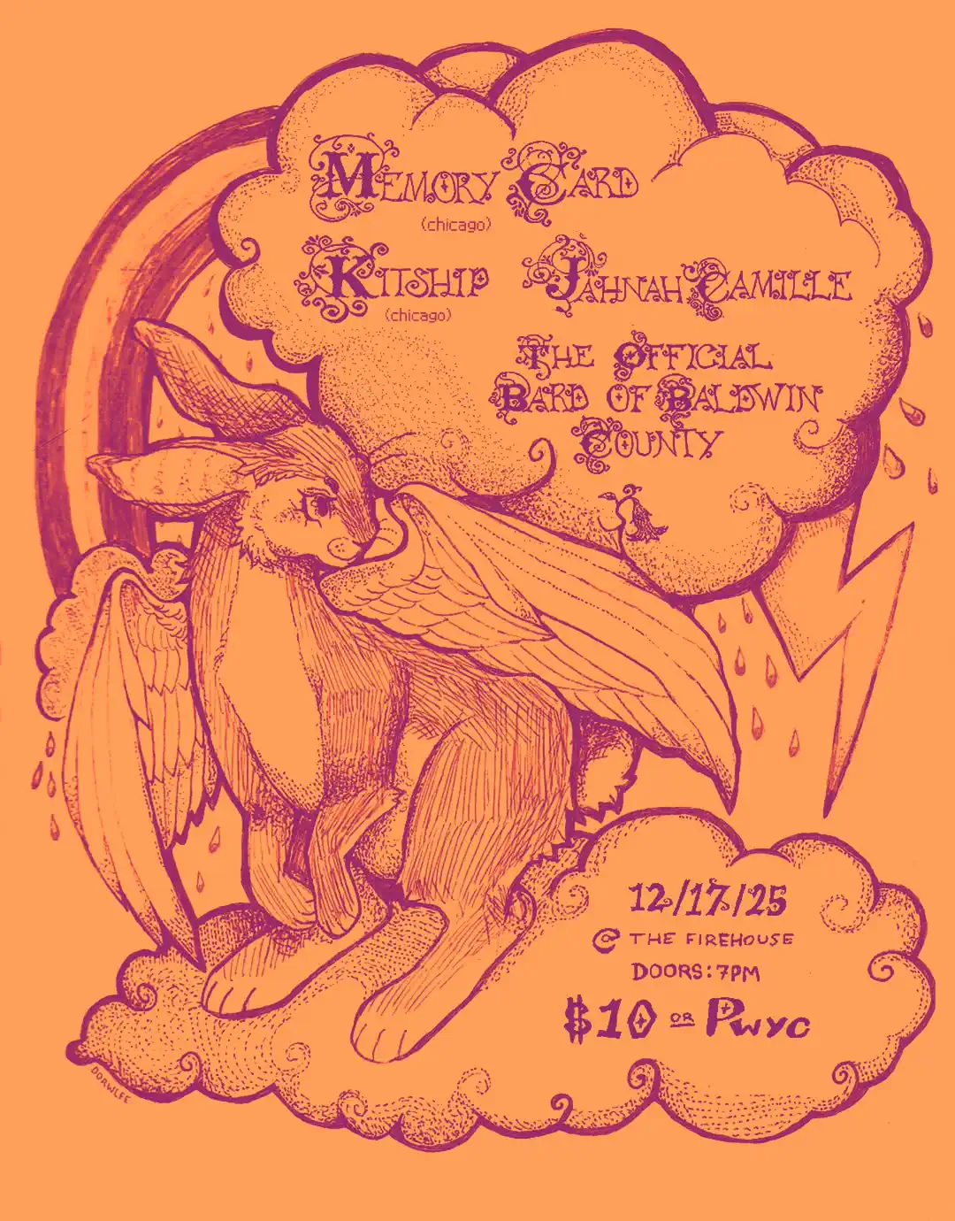 Feliz Jueves! Hometown legends @memorycard.error and Chicago newcomers Kitship will be playing Firehouse during their winter arc, supported by local favorites @jahnahcamille (closing out a busy year of touring, put out an incredible record in June) + the unkillable, undisputed chiller of the century @officialbardofbaldwincounty playing all the hits - this is sure to be a huge night for all the real music heads 🙌 Doors at 7, $10/PWYC/NOTAFLOF